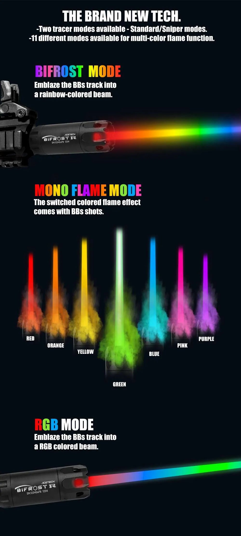 ACETECH has recently announced the launch of their latest product line, Bifrost R, which brings new gameplay and excitement to gaming enthusiasts. Bifrost R is an advanced version of the Bifrost, offering not only support for standard and green tracer bbs but also introducing red tracer bbs, providing gamers with even more options and customization capabilities.
