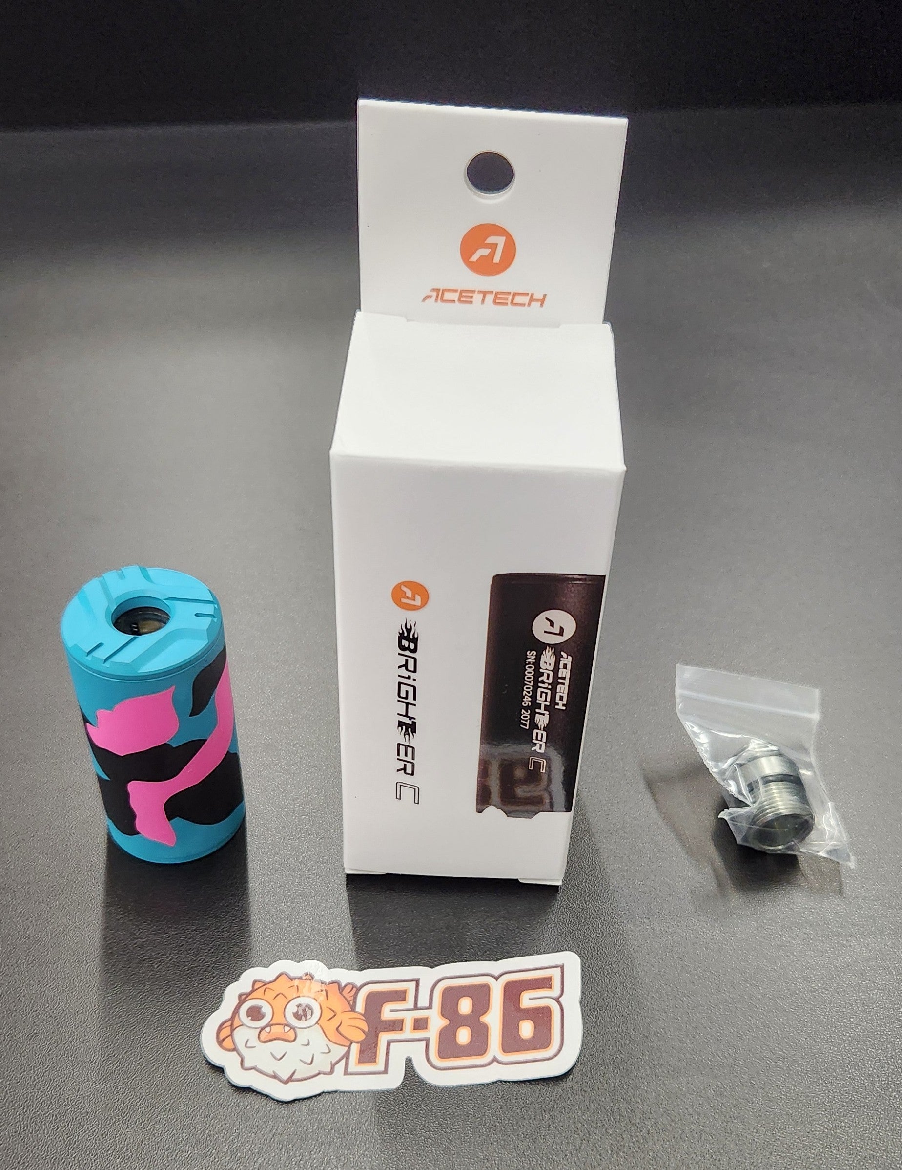 Package Includes: 1x Brighter C Tracer Unit, 1x M14 CCW to M11 CW Threaded Adapter, 1x Manual