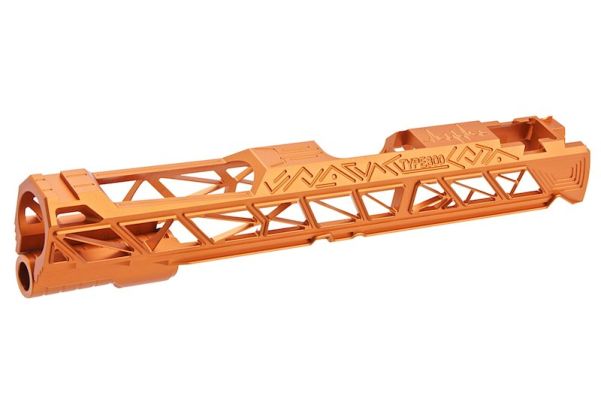 CNC machined using extremely lightweight 6063 aluminum, the slide set is extremely lightweight yet durable. Featuring an anodized finish and a 0.02mm tight fit tolerance for less play and wobble, it ensures that reliability and durability go hand in hand. The new '800' design is even more unique, with a full intact slide frame with profile reductions and triangular lightning cuts strewn about the slide, which aids in extremely fast, light, and snappy recoil cycles.