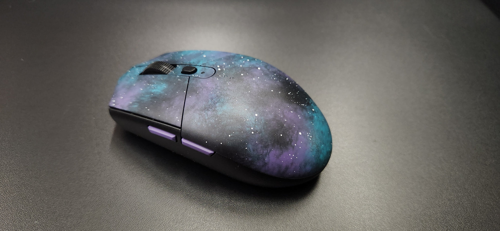Deep in the depths of space you'll find this Cerakote refinished "Galaxy" Logitech G305 mouse.
