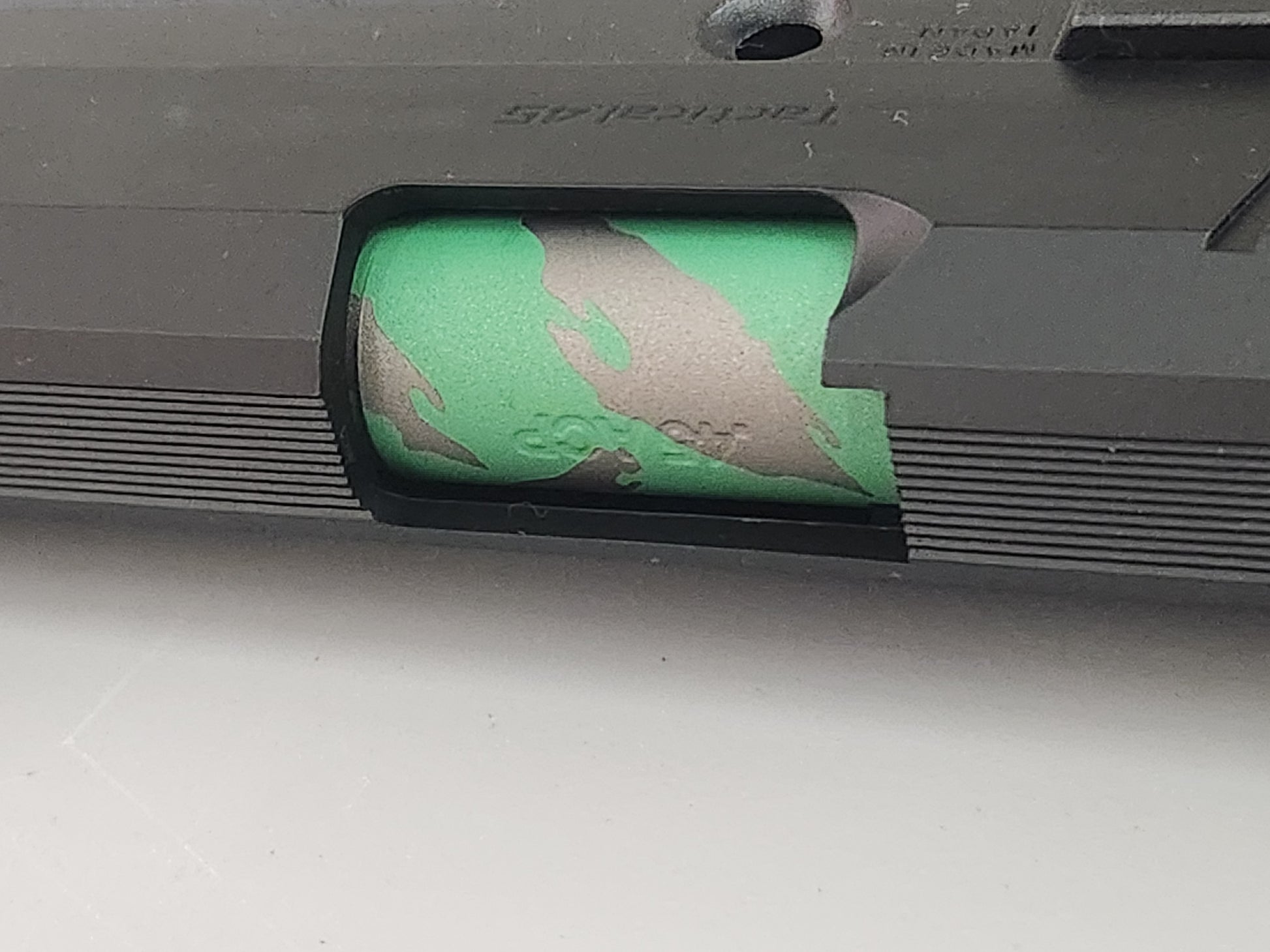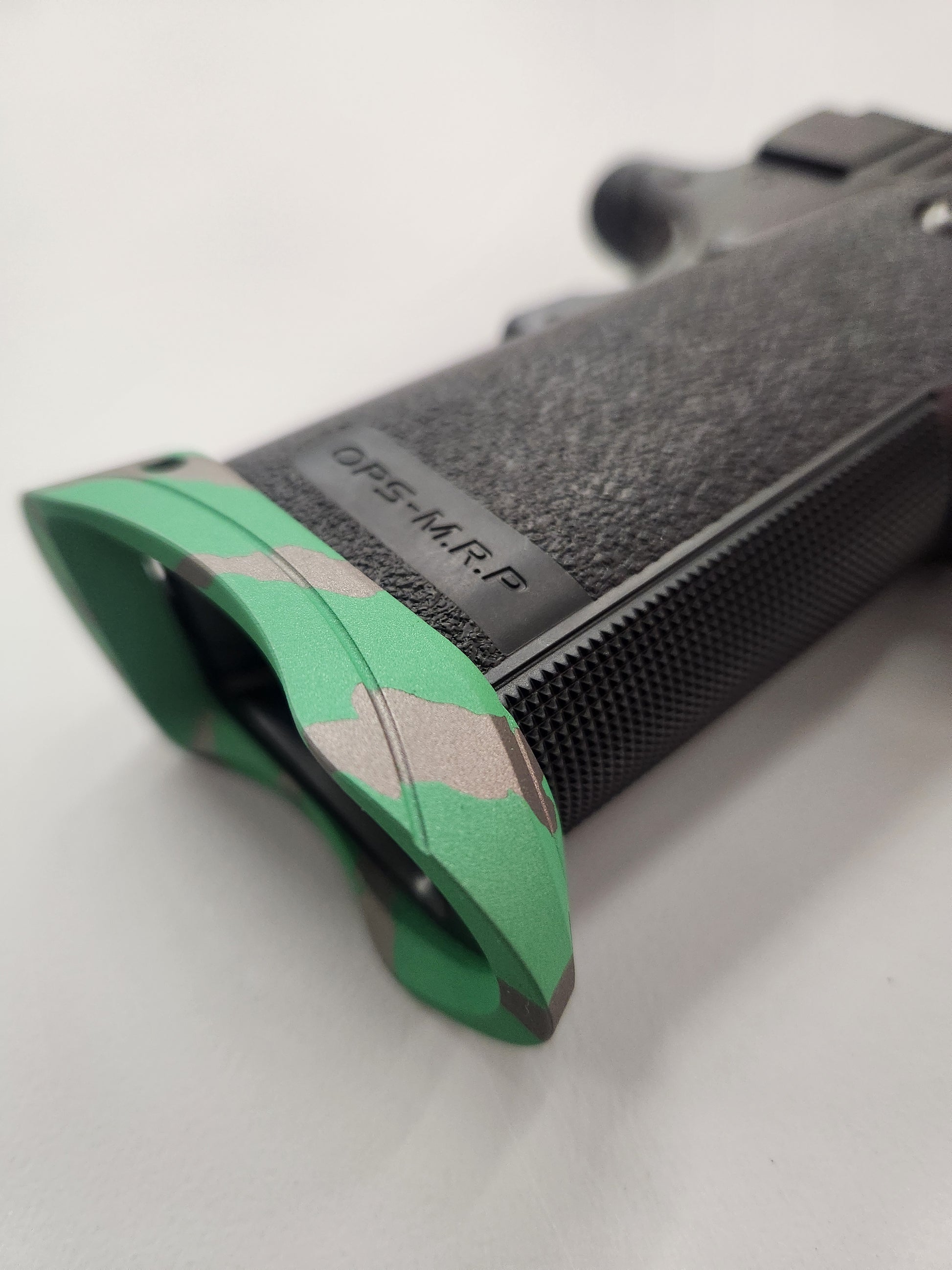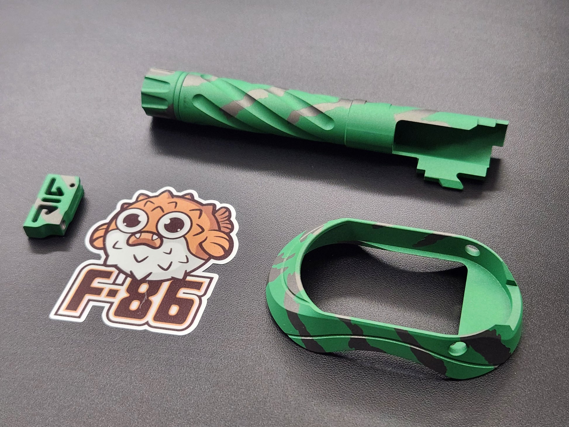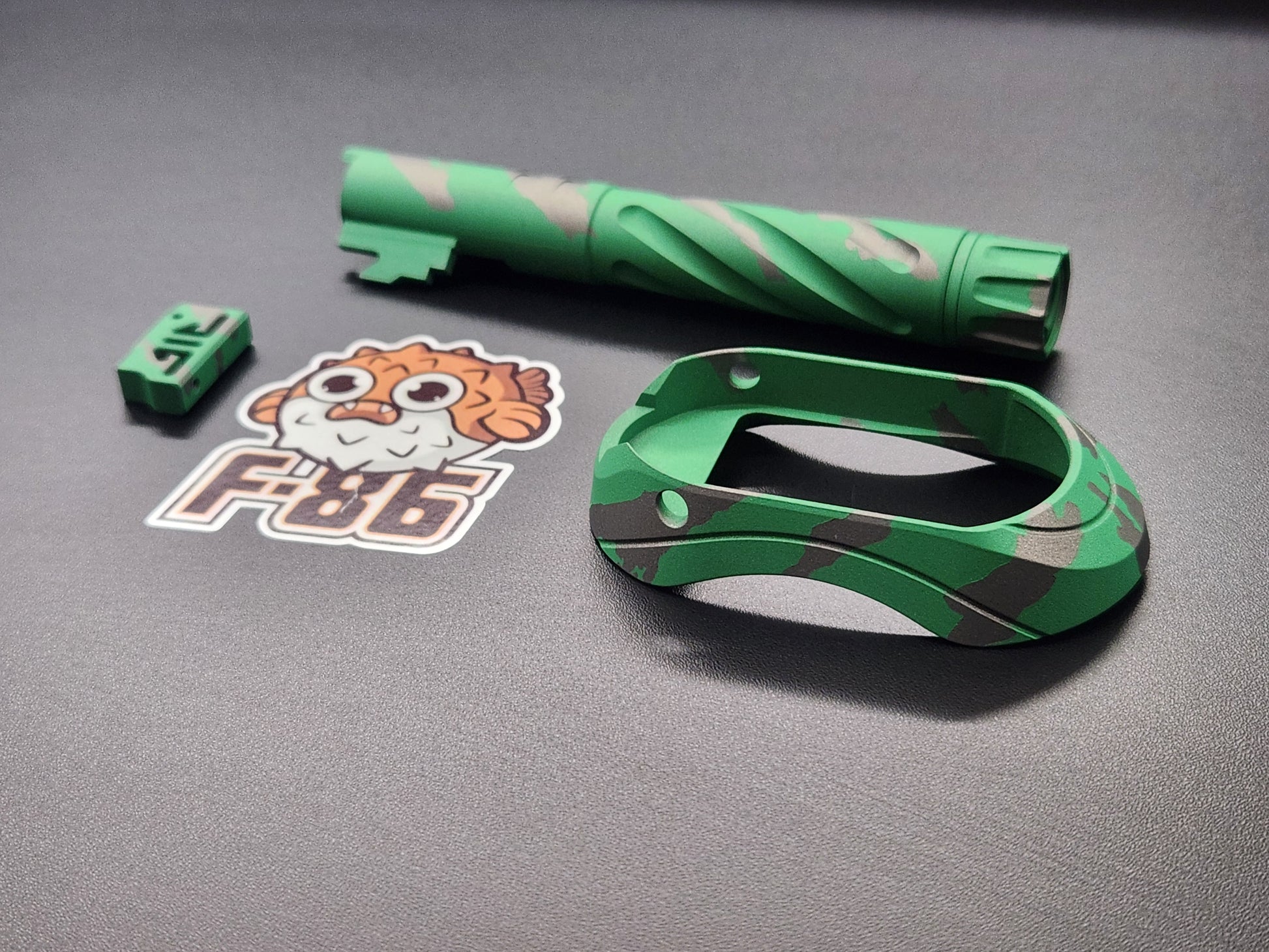 This unique kit features Cerakote H-Series Stainless stripes with an H-Series Squatch Green base on Lacapa parts.