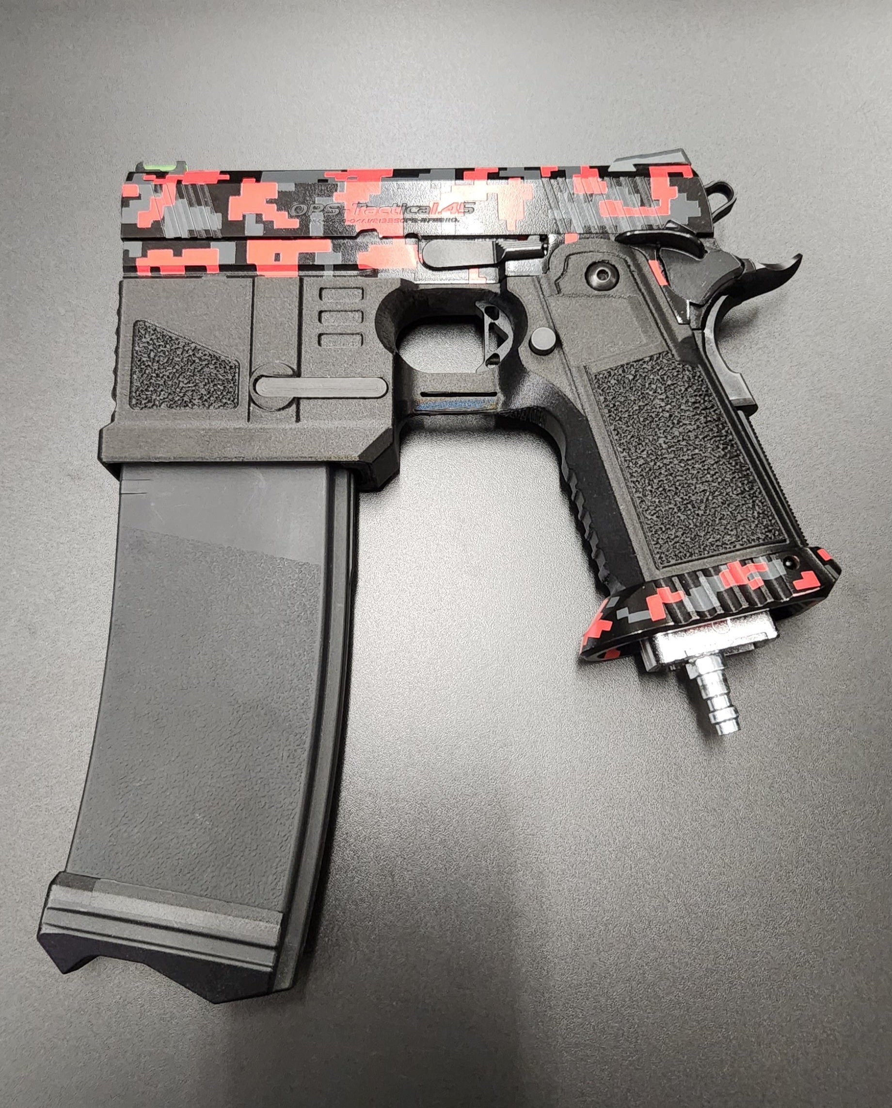 A prototype M4-style HPA feeding system engineered for the Tokyo Marui Hi-Capa platform and manufactured and designed in Canada for Canadian players. Designed for clean, consistent, and smooth BB feeding, this setup delivers a solid, reliable feel on the field.