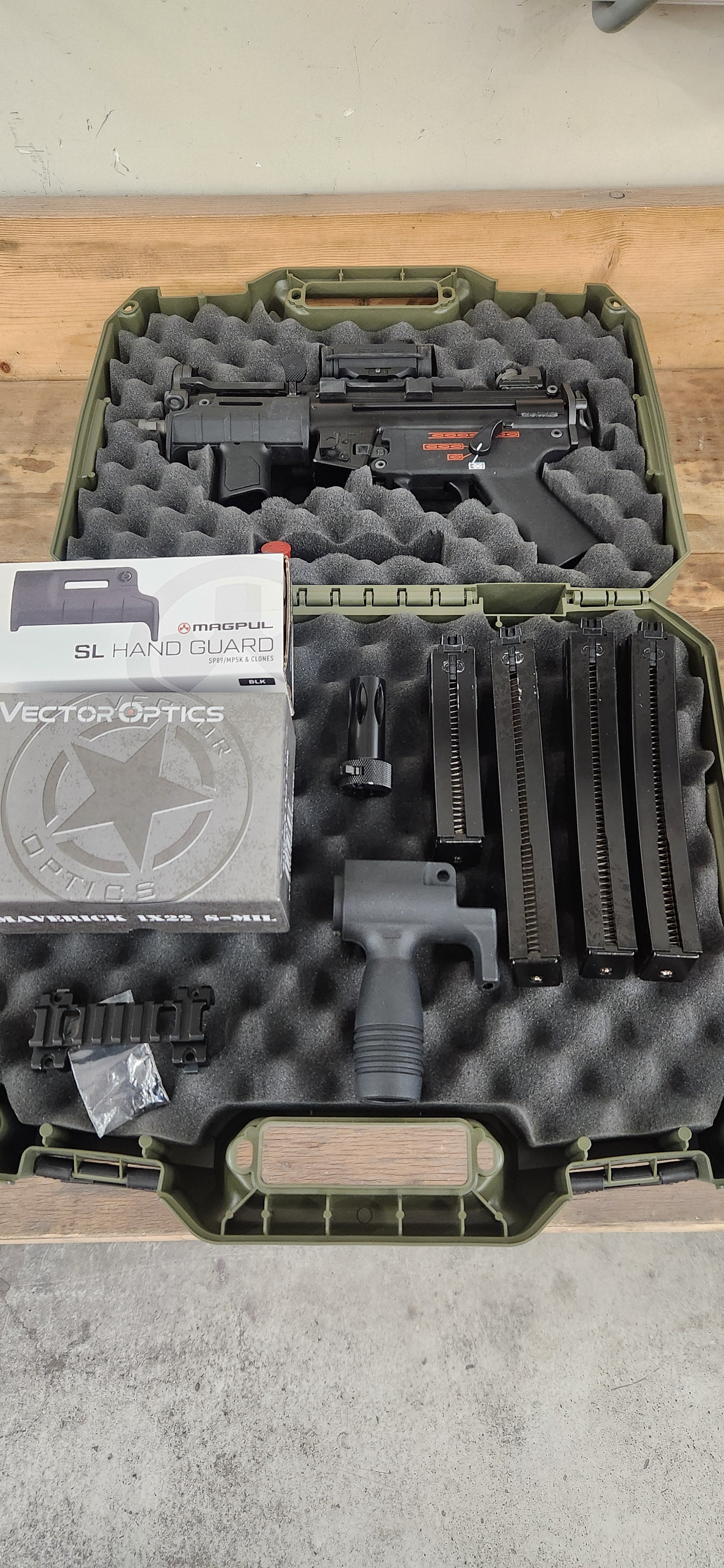 3 and a half mags, Magpul and Strike Industries external upgrades, a quality optic, this Mp5K is upgraded kindly and you can HK slap it all day long!